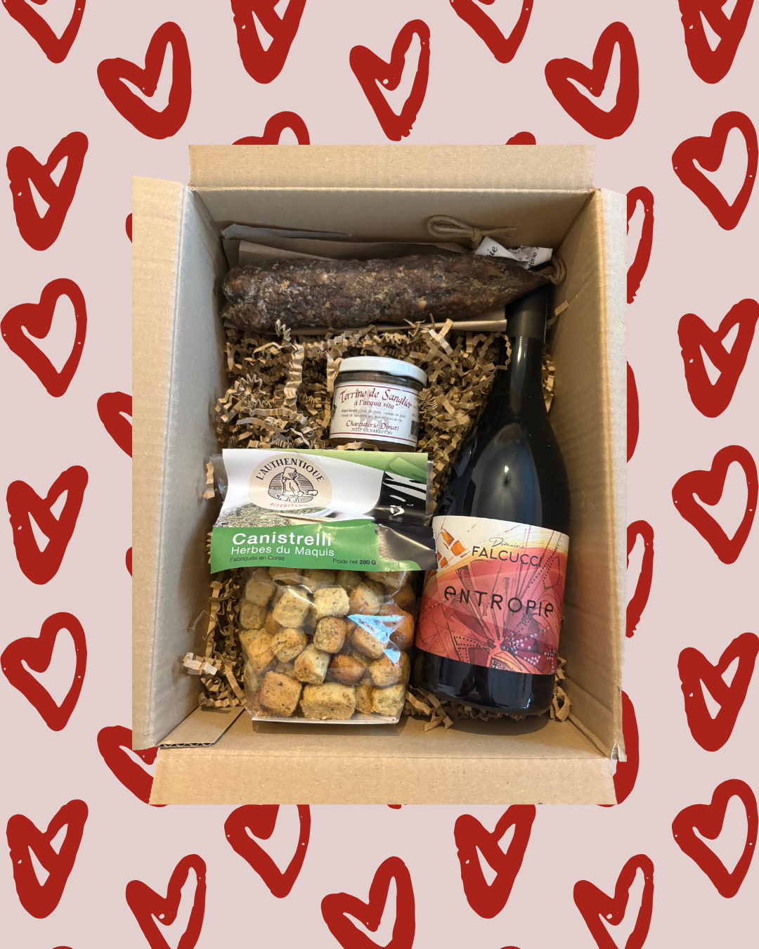 Cette box apéro a été pensée pour une Saint-Valentin tout en désir, autour de saveurs délicates et de produits choisis avec exigence :